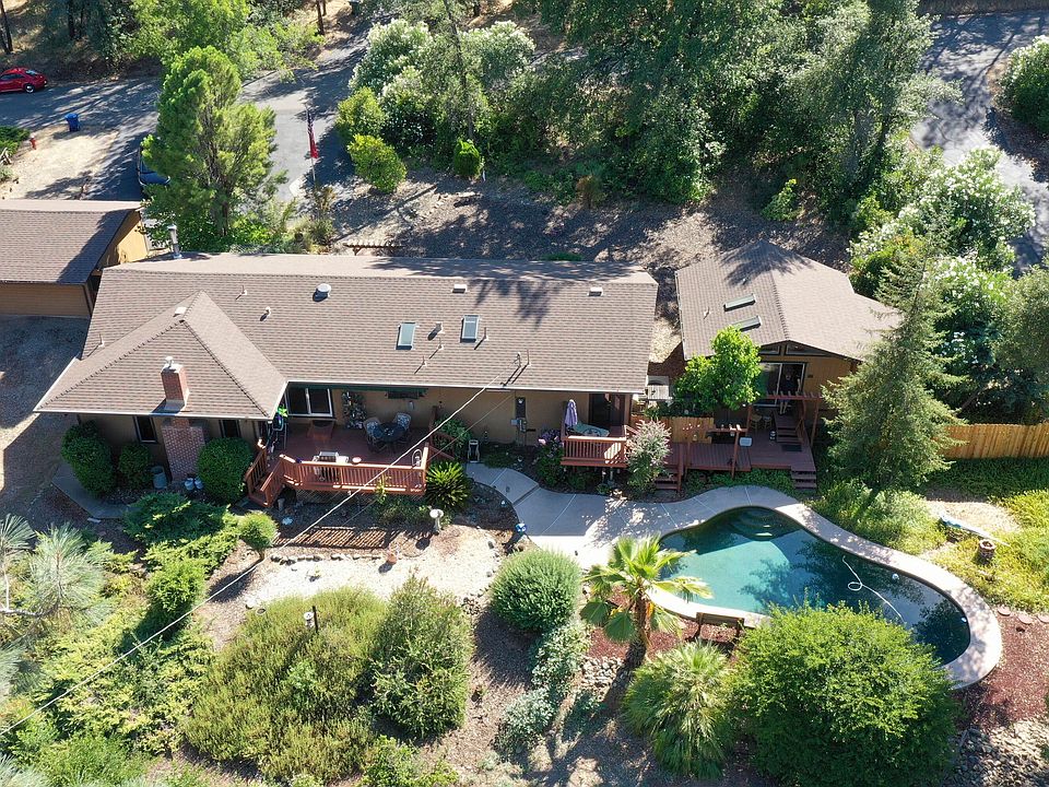 CHECKS ALL THE BOXES~A Wonderful Place to Call Home! ''Feel the Privacy'' of this 4/3-2,500sf Special Property that's Set Back Amongst the Trees {just minutes to the upcoming new Costco} 5 yr young Roof & HVAC, Blacktop Circular Driveway, Roomy Kitchen Supporting Granite Tile Counters, Garden Window w/ Views to Back & Solid Wood Cabinetry. Formal Dining Room & Dining Area w/ Patio Sliders to Access Deck for Summer BBQ's or Step into Cozy Family Room w/Gas Fireplace. The Main Living Room is meant for Entertaining as it has It's Own Wet Bar, Free-Standing Wood Stove & Large Picture Window for Front Views. The Primary Suite Supports Walk-out French Door to Refreshing Inground Pool. There is a Path that Leads to Custom AD/In-law Unit. Enjoy the Views & Quietness of this Exceptional Space