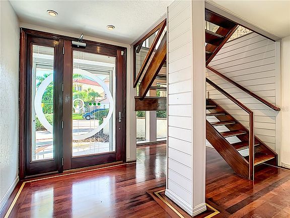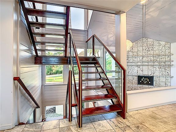 We are taking back ups on this house. Owner has moved just down the street, he is ready to sell. This modern coastal home has it all; incredible water views, lush landscaping, circular paver drive, and distinctly modern upgrades at every turn - everything you've been searching for! This carefully updated mid-century home enjoys the best of both indoor and outdoor space for show stopping sunsets every night! Entering through the stylish glass panel front door. Entertain effortlessly; the completely open concept interior featuring an unbelievable gourmet kitchen with inlaid wood floors, spacious dining and living room. With the upstairs laundry in the pantry. Adjacent to the kitchen and dining room, the Florida room enjoys views to the yard and 2nd patio. The master bedroom enjoys a patio access, and incredible water views even from the comfort of your bed. With a unbelievable master bath. Closet space is never an issue with the incredibly organized built in double closets. The two guest bedrooms have a bath just off of it. The ground floor patio has a train that runs the entire length of it. A downstairs sports room has a small bar in it. With an additional bath just of to the side. A downstairs laundry is in the next room. And, be sure to view the panorama video and 3D tour by clicking on the 2 camera icons.