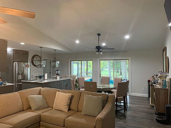 Now showing!!! Seasonal water view single story rancher with water access to the public side of the lake, remodel completed December 2018 - February 2019. Oversized paved driveway with plenty of parking done in March of 2019. All floors in the house were replaced with Pergo Waterproof floors. House has a beautiful kitchen and open floor plan. Gas fireplace and gas range, all other appliances are electric. All light switches are smart switches and master bedroom, living room, and dining room ceiling fans are smart switches as well. They can all be controlled via your smart phone or Alexa. Ecobee smart thermostat is installed as well. Kevo smart locks are also installed on the entry doors. All can be accessed via your smart phone. Plantation shutters on front of house excluding garage windows. 12x28 garage building in back yard, large 2 car attached garage. Screened back porch, large 1,000 sq ft patio off the screened porch wired for a hot tub. Back yard is being outfitted with used artificial turf for maintenance free green yard all year long.