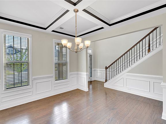 Ascending to the upper level, you'll find a spacious master suite with a luxurious en-suite bathroom and walk-in closet. Three additional bedrooms, one of which could be converted into a large flex area, offer ample space for children, a home office, or a guest suite. The home's 9ft ceilings with crown molding and chair rail add a touch of sophistication throughout.