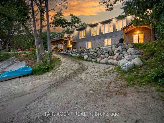 Tucked away on the shores of the French River, this fully renovated bungalow offers a rare blend of space, comfort, and waterfront living, all within reach of local amenities. With six bedrooms and three bathrooms spread across a spacious, light-filled layout, there's room here for the entire family to relax or gather together in style. The main level impresses with soaring ceilings and exposed beams, anchored by a beautifully updated kitchen with quartz countertops, a large island, and modern fixtures. Expansive windows throughout the open-concept living and dining areas frame peaceful views of the water and surrounding forest, bringing nature in. Downstairs, a second full kitchen, additional living space, and multiple bedrooms make it ideal for multi-generational living or hosting guests. Outside, enjoy a private sandy beach perfect for swimming, a deep-water dock for boating, and multiple outdoor seating areas for unwinding after a day on the river. The lot offers 119 feet of direct frontage on the French River, with a gently sloping, landscaped yard, a firepit area, and plenty of room for play. Notable upgrades include a new heat pump system for efficient year-round comfort and significantly reduced energy costs, plus a double attached garage and parking for up to 12 vehicles. With low property taxes, flexible possession, and turn-key readiness, this is a waterfront opportunity that truly delivers. Located just off Dry Pine Bay Road, you're surrounded by nature while still being a manageable drive to Sudbury, local shops, and essential services. Whether for year-round living or a luxurious getaway, this home is ready to welcome its next chapter.