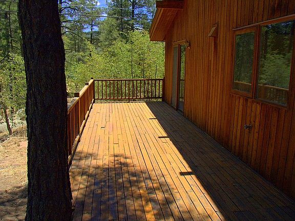 This is a beautiful Lindal Cedar home with a loft in Groom Creek. Surrounded by Ponderosa Pines. Dramatic high windows let in the beauty of the outdoors. Front and rear decks and natural landscaping.