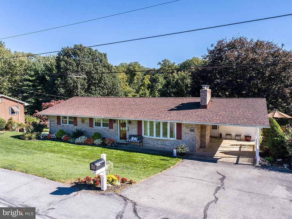 Welcome to this sweet, charming brick rancher with plenty of space to entertain & relax! Main level has beautiful hardwood flooring- you are greeted by a large, bright & sunny family room with a wood burning fireplace- perfect for those chilly winter evenings. Kitchen has space for a table, chic white cabinets & Corian counters. Separate dining room leads out to a sunroom- have your morning coffee here! Laundry is on the main level, and there are cabinets & plenty of storage. Bedrooms are all good size. Basement is fully finished & has another fireplace! Walk out to your flat, just over 1 acre lot, lined with trees. Carport offers covered parking- and there is a 1 car garage around back for all your gardening tools. Roof is BRAND NEW- Oct 2021. Nothing to do but move right in, this home has all neutral paint & is ready for new owners! Selling as-is, but in great shape!