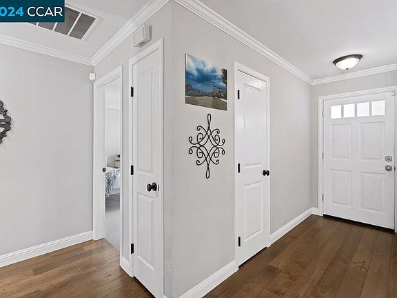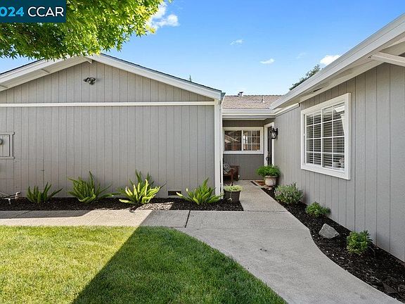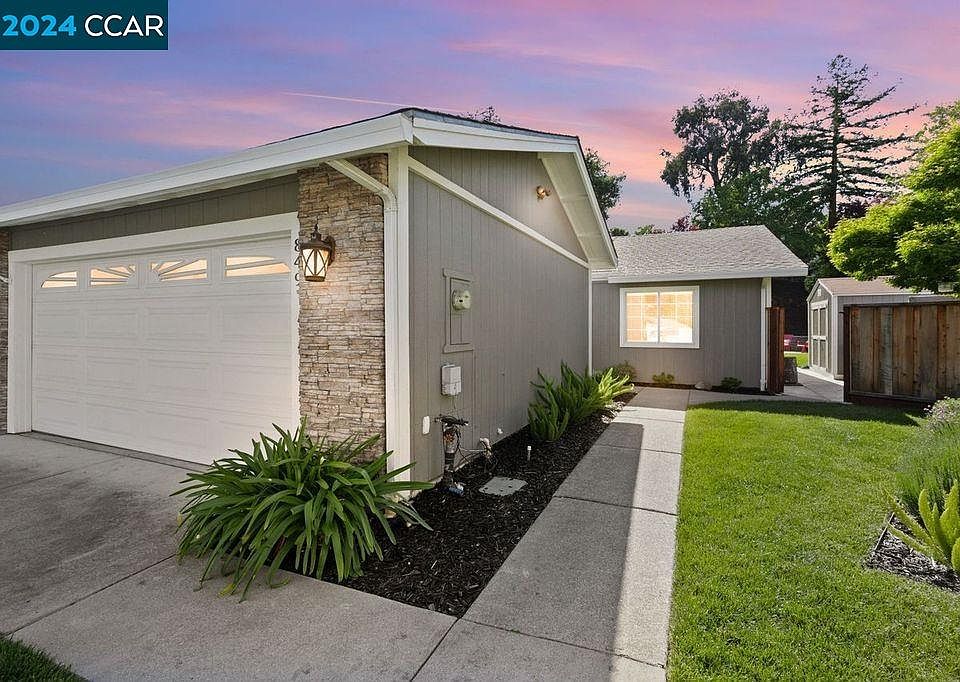 Rarely Available Twin Creeks Single Story Duet. This is the home you have been waiting for! A single story highly upgraded 3 bed, 2 bath duet of 1281 sq ft facing almost due East, nestled at the end of a cul-de-sac in San Ramon. Enjoy a fully landscaped front and rear yard on almost 1/4 of an acre! Inside, discover incredible updates throughout the home, including a fully remodeled kitchen with new floor to ceiling cabinetry, stone countertops, full tile backsplash, stainless appliances, a farmhouse sink, breakfast bar, and recessed lighting opening to your dining area and living room. Upgrades extend to remodeled bathrooms, engineered hardwood flooring, new carpet, wood core interior doors, baseboards, crown molding, and dual pane windows. Outside, new exterior siding, landscaped front yard, a spacious side yard with patio, and a brand new 8x10 Tuff Shed for storage or maybe an office. The backyard boasts a large patio with custom pavers, a stone retaining wall with uplighting, and an open lawn with space for a play structure and pool. Enjoy privacy and space, plus an HOA of only $155 a quarter, which includes a community pool and clubhouse. Ideally located in sought-after Twin Creeks, minutes from parks, top-notch schools, San Ramon City Center, and Business Park. Welcome Home!