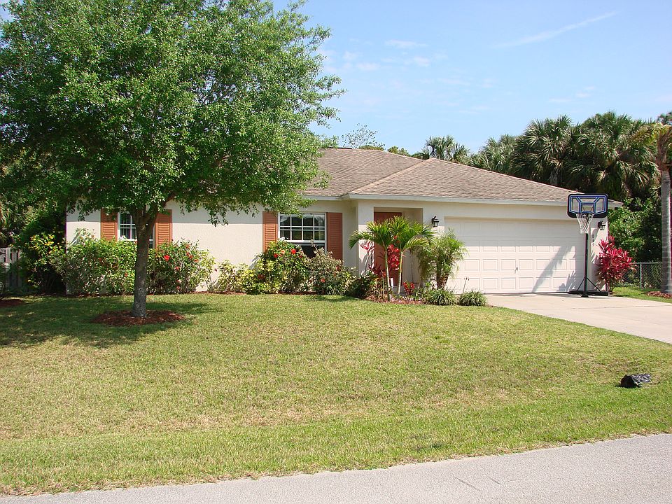 Perfect location for a house; a semi-secluded, quiet area with a privacy fence and few neighbors but close to Everything in Palm Bay. Backyard has huge potential, with trees providing shade or you can build your own pool. This house has 3 bedrooms, 2 bathrooms, a 2 car garage, split floorplan. Newer laminate flooring thoughout except bathrooms. New waterheater. Nicely kept and clean block house, comes with storm shutters. Make this great house your new home.