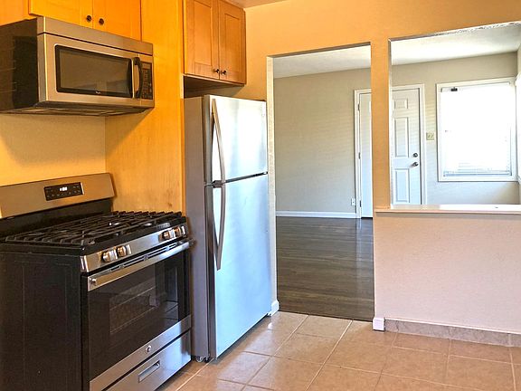 Updated 2 bedrooms, 1 bath duplex; Huge private backyard; Updated kitchen with granite counter top, maple cabinets, gas stove, microwave, dishwasher and refrigerator; Hardwood floors; Inside laundry with full size washer/dryer; Central heating; Dual pane windows; One car garage; Easy access to Hwy 101; Close to Google;