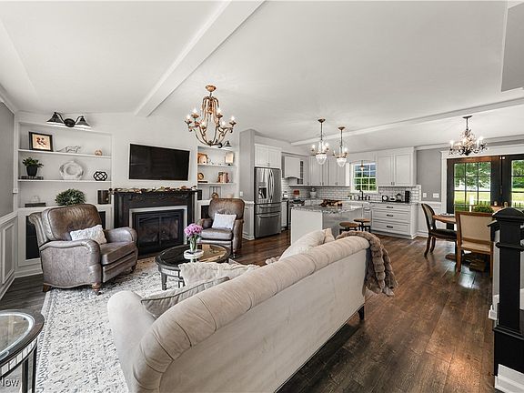 - Features: Bookcases, Chandelier, Cathedral Ceiling(s), Fireplace