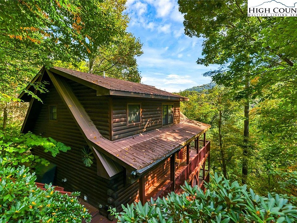 Fully Furnished Log Cabin in River Ridge!! Conveniently located between Boone and Deep Gap, this charming log cabin comes fully furnished and ready to enjoy. Previously a successful vacation rental, the property grossed an average of $51,400 annually from 2021–2023, offering excellent investment potential. Inside, the home features an inviting open floor plan with all-wood tongue-and-groove interior and wood flooring on the main level and a great room with cathedral ceilings and a stunning stone wood-burning fireplace. The kitchen overlooks the dining area and living space, and has been updated with brand-new stainless steel appliances. The main-level primary suite includes the primary bath with washer and dryer Upstairs, you’ll find a cozy loft—perfect as a reading nook or TV area—along with two spacious bedrooms connected by a Jack-and-Jill bath.The lower level is ideal for entertaining, complete with a game room featuring a foosball table, entertainment space, and an additional bonus room currently used as a bedroom (not included in the official bedroom count as it lacks egress), plus a full bath. Step outside to the lower deck with hot tub, firepit, and sitting area—an excellent place for relaxation after a day in the mountains. Additional features include, parking for up to 4 vehicles