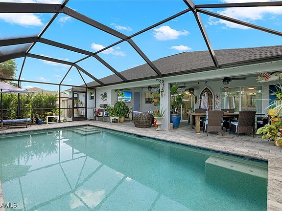 Stunning waterfront, 4 bed/2 bath HEATED Pool home, better than new!!! Sold furnished with tons of upgrades! The beautiful semi circular dock/patio provides excellent space for sunning, serenity, and a launch for kayaks, canoes, or paddle boards etc.! Beautiful tile throughout home, granite countertops, upgraded lighting and fans, mounted TVs. Lush greenery throughout the yard! Your own private oasis in paradise! This impeccably decorated with high end furnishings throughout ,home is being offered furnished for !, with sellers small list of exceptions. NO REQUIRED FLOOD INSURANCE!! Tucked back in a beautiful neighborhood surrounded by newer/ newly built homes. In the heart of Southwest Cape Coral, close to Shopping, restaurants, boat launches and golf courses. Quick access to Matlacha, Cape Harbour, Punta Gorda and Fort Myers airports