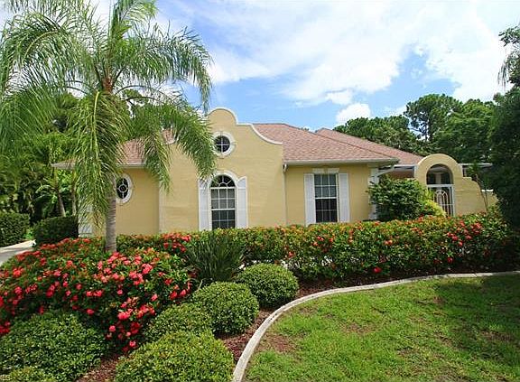 This custom designed home combines a comfortable elegance with the type of privacy not usually found in an established, centrally located Cape Coral neighborhood. Built on 2-full-sized lots (847 & 849 SW 19th Lane), this nearly half-acre site provides a buffer-zone from the neighbors, along with privacy on a wooded section of Palmetto Pines Country Club behind you. This privacy is further enhanced with an oversized, front entry courtyard topped with a screened cage, and a large, private courtyard pool area with a screened pool cage top. This split floor plan home combines a nice flow of family and social gathering spaces, including a bright, open living room, plus a separate formal dining room with a Waterford crystal chandelier, and a large kitchen with a casual everyday family dining area overlooking the courtyard pool. The master suite, with pool access, is tucked away by itself in the front of the home, while the guest bedrooms with walk-in closets, are separated from the main living space by a hallway at the back of the home. There is an enclosed bonus room for a home office, den, or man cave. ALL NEW: refrigerator, microwave, washer/dryer, toilets, and courtyard screens.