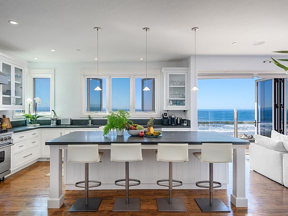 Discover the limitless possibilities of coastal living at 849 Sand Point, an exquisite Cape Cod-style beachfront estate with notable amenities. Graced with more than two acres of land and 250+ feet of stunning ocean frontage (two add'tl parcels provide even more frontage) this oasis offers ocean, island and mountain views from sunrise to sunset. A long, private and gated driveway provides abundant space for hosting. Generally seen in estate properties of significance, the motor court is flanked by groomed hedges and gardens creating a transformative experience as one leaves the hustle and bustle of the outside world and travels up the picturesque drive to the flawlessly maintained estate. Built in 2011 and retaining every inch of its modern style it is also exceptionally livable and cozy