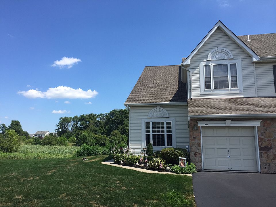 Come see this 3 bedroom 2 1/2 bath end unit townhome in the desirable Warrington Hunt Community! This home has been lovingly maintained and has generous upgrades in the kitchen and bathroom. All Lennox mechanicals are in excellent condition. New roof was installed 6yrs ago. As you walk towards the front entry you can't miss the amazing, open, luscious green fields and secluded private space in the back. The entry foyer is grand with high ceilings , open floor plan and hardwood floors. Moving towards the kitchen is the formal dining area. The kitchen is eat-in with beautiful granite countertops, stainless steel appliances and cherry cabinets and more! Off the kitchen is the generously sized living room with fireplace and eating area. Open the sliding door and relax on the private outside deck with retractable awning. Moving upstairs there are 3 large bedrooms and a full bath in the hall with upstairs laundry. The primary bedroom features cathedral ceilings and 2 walk in closets. The primary bathroom was updated with an all new vanity, separate makeup area and stand-up shower with a seating area- beautiful! The finished basement features plenty of storage space with a private office area and a walk out door to the back yard. This is a must see townhome!! This home is centrally located in Bucks County and close to lots of shopping. Schedule an appointment to see this home before it's off the market!