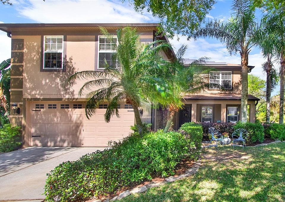 This is a must see! This beautiful single-family home features 6 full bedrooms, 4 full bathrooms, an attached 2-car garage, and opens up to a stunning screened-in lanai and pool. Enjoy a cup of coffee in your private garden and mature landscaping with no rear neighbors. This home is located in the desirable community of Sky ridge Valley. Newly LVT flooring on second floor, fresh paint in bedrooms and around windows, brand new railings for staircase, updated kitchen, and brand new sliding door leading to the backyard. First floor offers a formal dining room, kitchen and living room combo; a queen size bedroom with full bathroom - perfect for a mother-in-law suite or guest space - and laundry room. The second floor offers a spacious master bedroom with two large walk-in closets, a completely renovated master bathroom, 4 more great size bedrooms, and two full tub shower bathrooms, both with double vanities. This home also includes solar panels installed in 2022 FULLY PAID OFF. It is within close proximity to all the theme parks, attractions, restaurants, shopping, major highways, and the Orlando international Airport. Set up your private showing today!