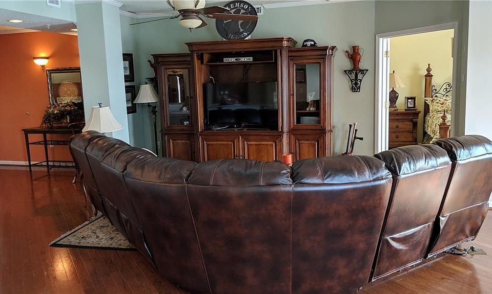Contact listing agent Delane Graham, 864-324-1217. Top Floor Fully Furnished Clemson Fan Condo!! #504. Clemson towers was built for the Clemson Tiger Lover in mind. This top floor condo has been owned by two families that come up for the games. Now it's time to go to another Tiger lover! Lots of space and well cared for with custom draperies, furniture and the stainless steel appliances are only 3 years old. Granite countertops with custom cabinetry and lots of it. The master has a nice soak tub with separate shower and big walk in custom closet plus great linen closet in the master bath. Long lake views and quiet top floor privacy. Clemson Towers has an elevator, storage just outside of your unit for extra furniture and etc. This unit has a very private powder room and good storage closets. Even the laundry room area has custom cabinets. No expense was spared when this one was designed by the original owner. Clemson Towers has a privacy gate and two parking spaces for each condo. There is a work out room that overlooks the lake and the pool area also has storage if you need it. A great place to live full time or part time for ball games. Go Tigers! It's a bargain compared to any other lake front condo with this much to offer. Extremely well built and well maintained. There are many primary homeowners who live here and keep the HOA in top shape. Not many to offer for sale and this one is fully furnished with more upgrades than any others. A must see.