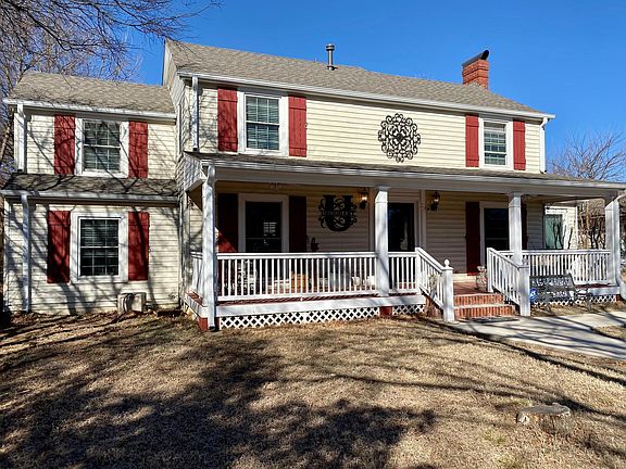 Tons of character here! Updates include: totally remodeled kitchen, roof, gutters, vinyl windows,concrete sidewalk/patio, paint and ch&a. Kitchen offers lots of shiplap, tons of cabinets, new appliances, gas stove, tile flooring and dining space. Large living area offers gas log fireplace, built ins, hardwood floors and access to large sun room. Huge sun room with gas fireplace, access to cellar and back patio. Large utility room offers two pantries, sink, storage and access to back patio. Formal dining room with hardwood floors. Upstairs offers 3 large bedrooms, full bath and master with walk in closet and gas fireplace. This property offers a 2 car detached garage and 620 sqft garage efficiency apartment. The apartment does need some work but would be a great source of additional income or additional living space.