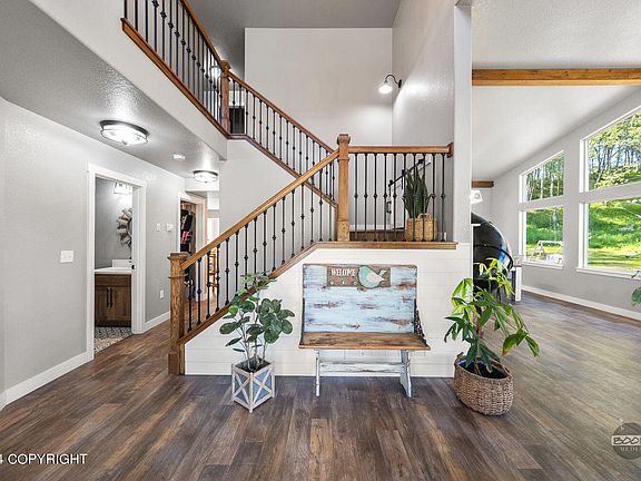 two words- Wet Room! Located mins from Downtown Palmer, Easy commute to Trunk road. This home features 3 bedrooms upstairs and one on the main floor. The Wet Room is a real spa like retreat. Each upstairs bedroom have ceiling fans. The fam room has a beautiful fireplace framed by the perfect ambiance lights. The home sits on a 1.34 acres. Rv parking, com. well, Wired for generator & hot tub