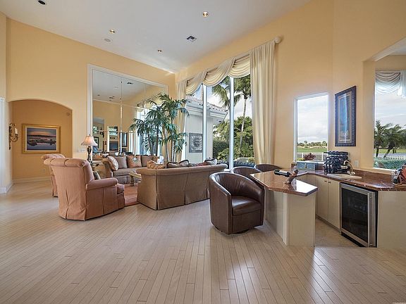 Ibis Estate Home with Spectacular Water & Golf Views! Double Lead Glass Doors greet you as you enter the Marble Floored Foyer & immediately notice the View! On either side of the Foyer are matching Stained Glass Panels offering privacy to the Dining Room & Den. Light Wood-Tile covers the main Living Areas. The Den also has Wood-Tile. Most rooms have Knockdown Finish Walls. The Living Room boasts a Custom Mirror which reflects the light coming from the large rear windows. A Wet Bar separates the Living & Family Rooms. The Kitchen boasts Granite, a Jenn Air Cooktop, Bosch Dishwasher, Double Ovens, Built-In Microwave, & Sub Zero Refrigerator. Roof replaced in 2016. This one is not to be missed. -Expansive Outdoor Entertainment Area with Open Pool, Raised Spa and Spacious Deck along with a 22' x 12' Screened and Covered Patio with Summer Kitchen overlooking a Lake with Fountain, onto the 6th Hole of The Legend Golf Course. -The Family Room includes a Tray Ceiling, Paddle Fan & Sliders to the Pool and Patio. -A Breakfast Nook is located off the Kitchen and Family Room with Pool, Patio, Golf & Water Views. -The Spacious Owner's Suite includes a Tray Ceiling, Double Door Entry, Double Walk-In closets, Stunning Pool, Water and Golf Views, while the Bath has Double Sinks, One with a separate Vanity Area, Spa Style Roman Tub, Shower with a Bench and Marble to the Ceiling, and Private Water Closet with Bidet. -One Guest Room is En-Suite with it's own Private Bath, the other Two Guest Rooms are Jack & Jill Style, sharing a Bath with Double Sinks and a Tub & Shower Combination. -All guest rooms have Walk-In closets. -This Fabulous Floor Plan includes Two Powder Rooms, One is Cabana Style, located off the Pool & Family Room while the Second is conveniently located near the Kitchen, Dining, Living & Family Rooms. -The Laundry Room includes Front Load Samsung Washer & Dryer, Sink & Cabinets. -The 3 car garage includes Built-In Cabinets, Automatic Openers & Pull Down Attic Stairs. -Other Amenities include Speakers throughout, Central Vac, Security System and Hallway Niche. -New Gutters and Downspouts 2016 -New Impact Sliders in Family Room 2019 -New Pool Heater 2020 -New Hot Water Heater 2021 -All This located on a Cul-De-Sac Lot with Landscaped Island. -Ibis is a mandatory membership community. See the attachments for the latest fees. -A one time Capital Contribution will be charged at closing for HOA & POA.