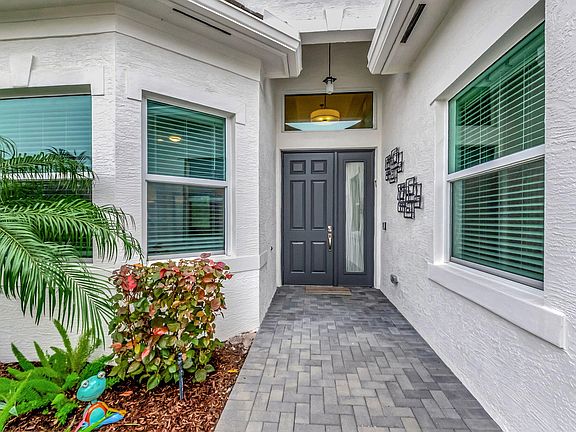 Move right in to this light bright Vienna Model with impact glass located on oversized private lot complete with extended patio & more. Enjoy this great open floor plan with great closet space, ensuite, 3rd bedroom used as den office with no closet, large laundry room & oversized 2 car garage. This home is conveniently located in the center of the communmity in walking distance to the cllubhouse where you will find all you could ever hope for in an active adult lifestyle offering dozens of clubs, classes, entertainment, pickleball, tennis, boccee, fitness center & cafe. This home is one of the newest in our gated community of only 582 homes & all of the amenities u can hope for. HOA fees include lawn, cable, alarm monitoring, exterior painting, roof cleaning, gated entrance & more.