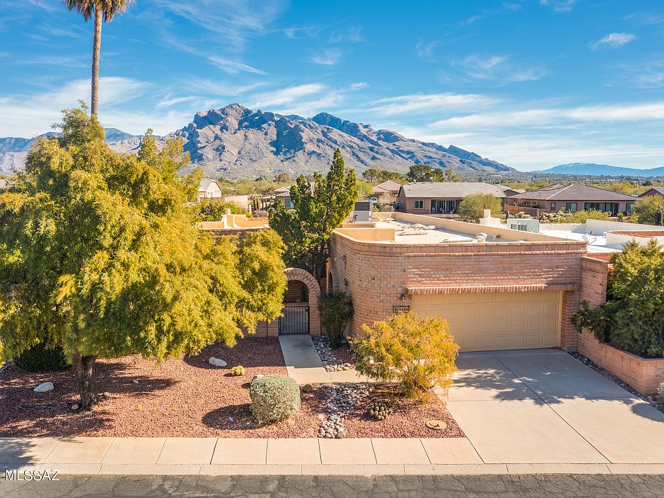 Expect to be impressed by this meticulously maintained, updated townhome in Fairfield at La Cholla Hills. Outdoor living at its finest, beautiful mountain views from the backyard, front courtyard, plus an additional covered side patio. The kitchen has been updated with cherry cabinets, gorgeous granite countertops and stainless steel appliances. Both bathrooms have been updated with cherry cabinets and quartz countertops. The large primary bedroom includes a walk in closet. Enjoy an oversized garage that includes built in cabinets. Community amenities include community rec center, 2 pools and spas, pickle ball, tennis, shuffle board, bocce ball and more. Great location close to shopping, restaurants, golf, hiking and so much more!