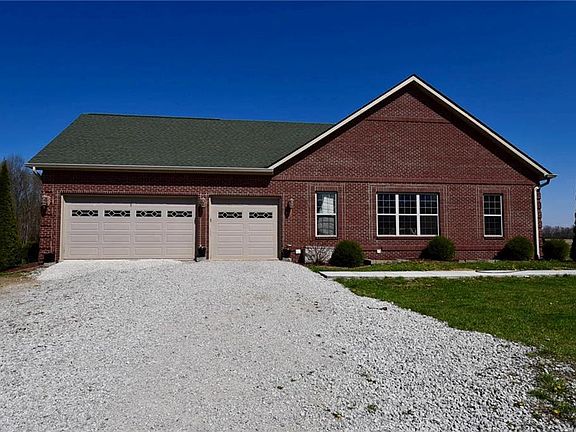 Beautiful country setting with this all brick upscale ranch over a full basement. Open concept. Expansive kitchen. Spectacular views on your expansive 11.36 acres which includes woods and a pond. There are two barns. 1: 30x50 that is 14 ft/ht; 2: 30x50 with 8ft/ht. The pond is stocked w/catfish;blue gill;bass. Kitchen is equipped with JennAir and attachements. Garage has 600 amps.Home 400amps; Spare Barn 200 amps; commerical well; sealed dual sump pumps; perimeter drain around the house thatdrains into the pond.There are tree other parcels that can also be bought. A total of 46 acres.