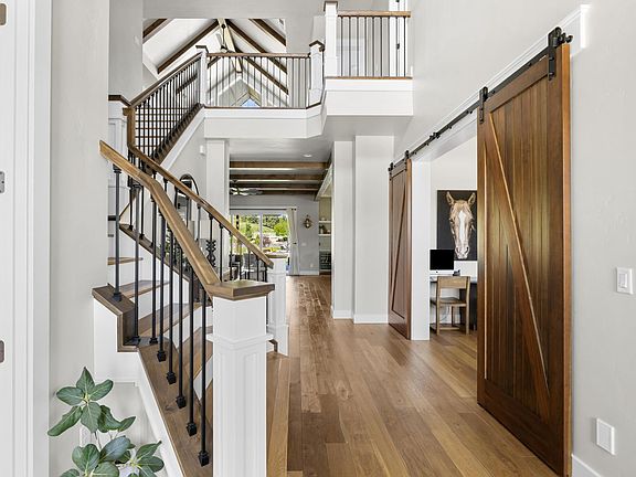 The main floor features a serene primary suite and guest accommodations, while the upper level offers a loft and balcony with breathtaking views. Beyond the home, residents enjoy exclusive access to Dry Creek Ranch amenities, including a clubhouse, equestrian center, and organic farm.