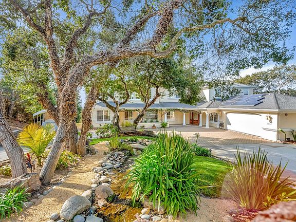 Gorgeous views and sunsets from your western facing backyard and deck. There is more to see from the upstairs rooms including the two primary bedrooms-one has been transformed into the perfect retreat with an office, full bath, and movie theater. Great kitchen, living room and dining room combo. Two bedrooms and a full bath downstairs that is perfect for multi-generational living. Don't miss the perpetual stream in the front yard that enhances the peace and serenity of your new home. There is plenty of space surrounding the property and a long circular driveway. 3248 square feet of living area built on 1.6+ acres in a gated community of 12 homes; you'll enjoy privacy and also be within a mile of 101 with access to Carmel, Monterey and a direct route north to Silicon Valley and the San Francisco Bay Area. There is so much more to discover beyond the virtual tour and pictures. Your search is over, this a great home you'll enjoy for years to come.