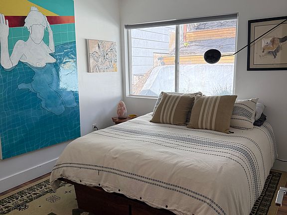 Sunny furnished private room available in a 4 bedroom, 3 bathroom home. The room has its own private bathroom. There is also an additional shared bathroom upstairs. The home features a fully equipped kitchen, laundry in unit, off-street driveway parking, and multiple outdoor areas including a pool, hot tub, outdoor kitchen with TV, fire pit, and a large wraparound patio overlooking open space. One bedroom is currently set up as a home gym with cardio and strength equipment. The property borders open space on multiple sides, with neighbors only on one side. The setting is quiet and private, with trees and natural surroundings. The home is shared with one other person (the owner), an artist who frequently travels to New York for graduate school, so the home is frequently quiet and well maintained. Looking for a respectful housemate who keeps shared spaces clean. Working professionals and students welcome. Well-behaved pets may be considered. Service animals always welcome. A second, smaller unfurnished room may be available for use as a private office/workspace for an additional fee. Details discussed after initial screening. The home is shared with the owner. Overnight guests are permitted on an occasional basis with prior approval; no long-term or additional occupants without written consent. Utilities are included with reasonable use. Electric vehicle charging is not permitted. Hot tub use is not included in rent or utilities. No smoking or vaping inside the home. Quiet hours observed after 10:00 PM. Pets may be considered on a case-by-case basis and must be approved in writing prior to move-in. Service animals welcome in accordance with applicable law. Initial lease term of 12 months. After the initial term, the lease converts to month-to-month by mutual agreement. Shorter terms of 6 months may be considered for the right fit.