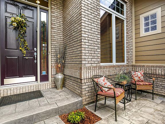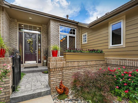 Stunning 6 beds/3 baths custom executive home backing to large greenbelt, w/ entry courtyard & spacious entertainer's layout. An enchanting 'garden-oasis' landscaping surrounds & nestles this neatly cared for property. Manicured easy-maintenance yard, garden beds and flagstone pathway will delight everyone for years to come. Walk-out covered stamped-concrete back porch accessible from kitchen/family & owner's retreat. The private suite enjoys arched entryway, walk-in closet & relaxing garden/open space views. Spacious eat-in kitchen & family room full of elegant touches. Welcoming great room with 11' ft ceiling & tiled foyer. 8' doors throughout main floor. Finished basement offers ample 3 bedrooms, bath and rec area w/ wet bar. Additional features include tray ceilings, built-in speakers & 2 large bonus storage rooms. Two separate 2-car garages! Picturesque community, thoughtfully designed to maximize privacy between properties & provide plenty of green areas. Quick access to I-25!