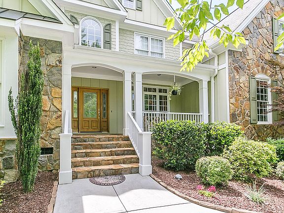 Luxurious living awaits you in this gorgeous cul-de-sac estate w/river stone facade tucked away on .69 acre & surrounded by permanent forests at front & rear of the home. Bright, open, vaulted LVR w/gas log fireplace & multiple skylights. The home is filled w/upscale features incl. hardwood floors & heavy crown molding throughout. The vaulted great room, warmed by a stone fireplace, is opened to the kitchen accentuated w/staggered 42” wood cabinets, pantry, granite counters, SS appliances, breakfast bar & dining nook that accesses the screened porch & stone patio with fire pit. Multi-level tray ceilings in the master suite w/walk-in closets, sitting area & bath w/whirlpool tub, tiled shower w/dual showerheads & water closet. Jack/Jill bath & 2 beds upstairs, w/large bonus room w/closet, perfect for 4th bedroom or office! 2020 updates include new roof, fresh exterior paint, new AC unit, new SS oven/ microwave combo with a warming drawer!