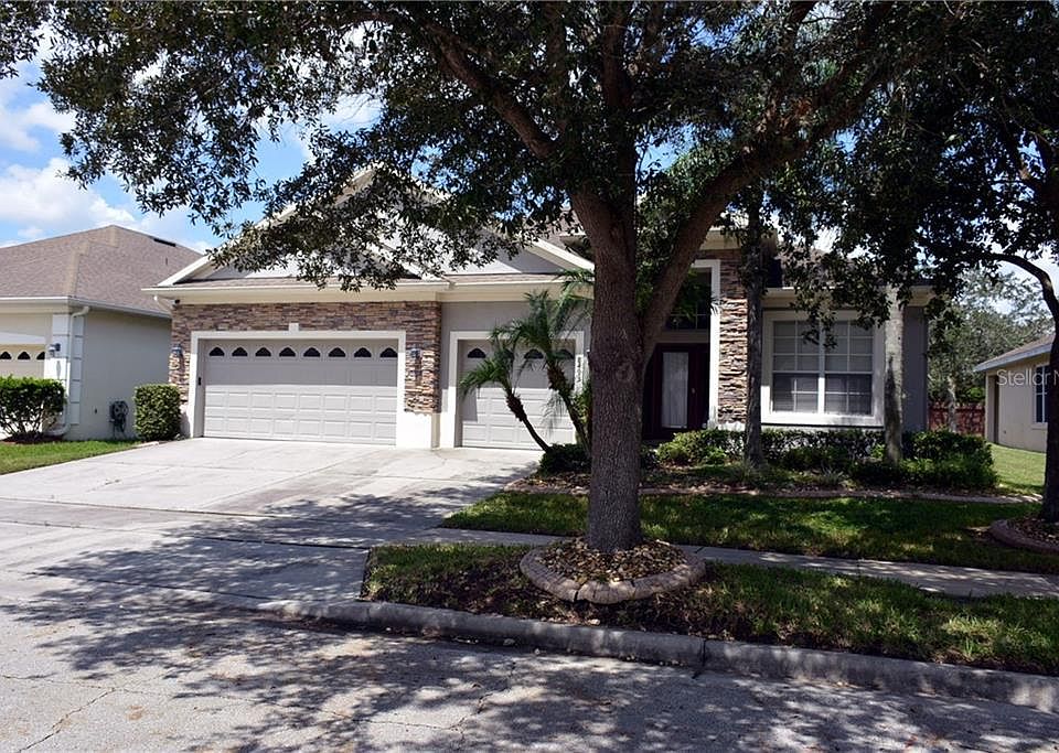 5 bedroom, 3 bath, 3 car garage home with good curb appeal - stacked stone accents & curbing around landscape beds * Located in Waverly of Vista Lakes, enter home through a covered porch & etched glass doorway with sidelights & line-of-sight to backyard * Engineered hardwood flooring in the Great Room, Master BR & guest bedroom with ensuite bath * Tile floors thru-out foyer, family room, kitchen & nook, laundry, hallway & baths * Great room with foyer, dental molding & wall niche * Kitchen overlooks breakfast nook & family room * SS appliances including Samsung French door frig, 42 upper mocha cabinets, tile backsplash, step-in pantry & Corian counter tops * Family Room overlooks lanai & back yard with brick wall & vinyl fencing * Master bedroom with Trey ceiling, LED lights, engineered wood floors, walk-in closet & French door leading to lanai * Master bath with separate tub & shower, spacious vanity & private water closet * Guest wing includes 2nd bedroom with ensuite bath, 3rd & 4th bedrooms, spacious guest/pool planned bath with double vanity & single light French door * alcove for planning area * Staircase leads to 5th (19x18) bedroom/bonus or theater room * Volume ceilings throughout * Spacious 3 car garage with openers * Security system - panel in master bedroom * Vista Lakes Community offers resort style living with club, lap & resort pool with water slide, tennis courts, walking trails & fountains * Waverly is gated with gazebo, pier & childs park