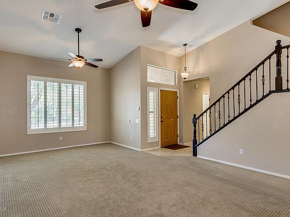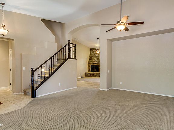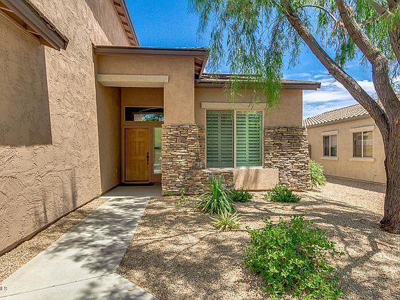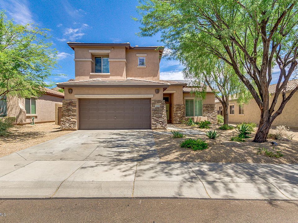 A Beautiful home in the desirable community of West Wing Mountain. It has vaulted ceilings, 4 bedrooms, 2.5 baths and a den/office. The kitchen has a bright and open layout with stainless steel appliances, an island and breakfast bar that opens to the large family room with a stunning stone fireplace. The master bedroom and den are on the 1st floor, 3 bedrooms on the 2nd. This home has solar, making the electric bills extremely low. The fully landscaped backyard is perfect to enjoy the Arizona weather with a pool, artificial turf, mature plants with an automatic watering system and a gas stub for a BBQ grill. The exterior has recently been painted. The neighborhood has gorgeous mountain views and hiking trails nearby. This home has everything! It just needs a new owner!