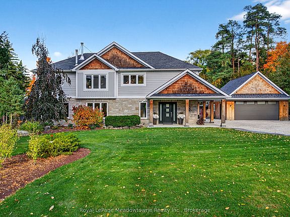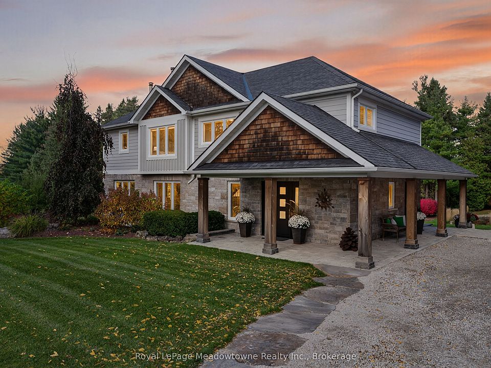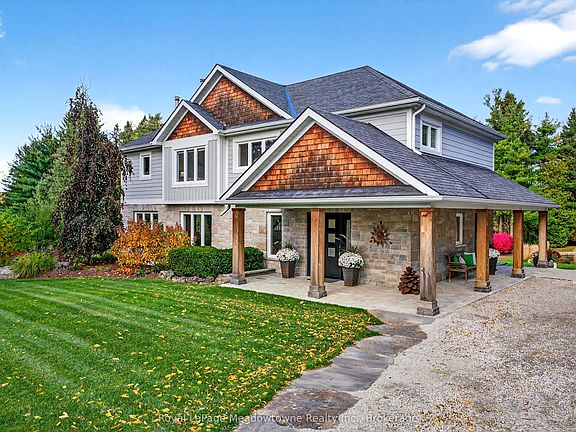 Escape the everyday to this custom-built haven, a rare 2.8-acre private retreat where you can awaken to the call of the wild and still be perfectly connected. Originally a cherished 1925 home, this residence was completely and thoughtfully reimagined in 2013 for maximum energy efficiency and modern comfort. The home's heart is designed for effortless connection and entertaining. The open-concept main floor flows around a gourmet kitchen, featuring a large island that's the perfect gathering point for friends after a day on the trails. Step directly from the kitchen onto the wonderful covered patio, an extension of your living space, offering an elevated, peaceful view, your new favourite place for morning coffee or evening cocktails. Upstairs, four spacious bedrooms provide quiet refuge, including a primary suite complete with a luxurious ensuite and walk-in closet. This is more than a home, it's a year-round recreation pass. From your backyard, step directly into the wilderness of Kelso Conservation and Glen Eden Ski & Snowboard Park, offering endless adventures in hiking, biking, swimming, and winter sports. The property itself is a private wonderland. A spring-fed pond with a fountain provides a serene focal point for peaceful reflection. Wander your own private wooded walking trails. Gather under the stars at the firepit. Tucked away in the woods is your ultimate escape. A private wood-fired sauna complete with a cold plunge, offering a restorative ritual after a long hike or ski. Car enthusiasts and hobbyists will love the double car garage with a loft, offering a perfect space for projects or future development. And for the artisan or entertainer, a separate workshop with a pizza oven adds a unique, creative touch. This exceptional property offers a dreamy blend of country charm, modern convenience, and immediate outdoor adventure. It's where your love for the natural world meets your desire for a sophisticated, connected life. Your adventure starts here.