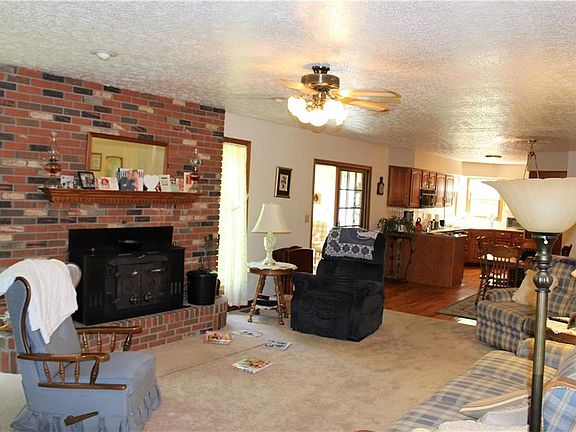 Cedar and brick ranch with 3 bedrooms and 3 full bath on 3 acres. Beautiful treed property with 32x32 pole barn with concrete floors, electric and addition covered porch area for entertaining or parking. Spacious kitchen with hardwood flooring open to the family room with brick fireplace with wood burner. Sliders to all season sunroom off dinette area. Formal living room in the front of the family room. Master bedroom with full bath with tub/shower, ceramic floors and plenty of storage. Two additional bedrooms and full bath complete the main floor. Partially finished lower level with full bath. Two car attached garage and fully paved driveway goes all the way back to the pole barn.