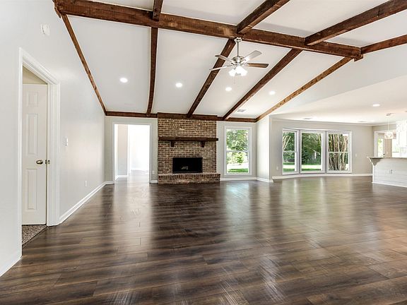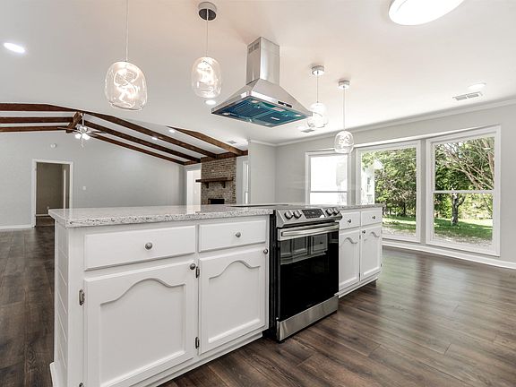 Newly Remodeled, 3 beds, 2.5 baths on 1.08 acres! Open-concept family room with wood-burning fireplace. Kitchen features New stove, dishwasher, cabinets, and granite countertops, New hardwood laminate flooring and new carpet in the bedrooms. Large master bath includes new dual sink granite countertop, claw foot tub, and separate titled walk-in shower. Additional bedrooms joined by a fully remodeled Jack-and-jill bathroom. Freshly painted interior and exterior. Large sunroom off the kitchen where you can relax and look out onto your covered patio through the wall-lined set of windows. New HVAC 2023. Metal roof. A truly tranquil and beautiful setting to spend your evenings relaxing at home.