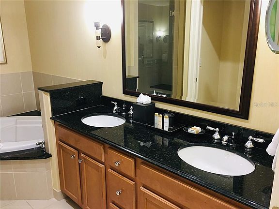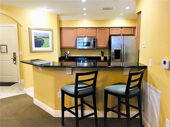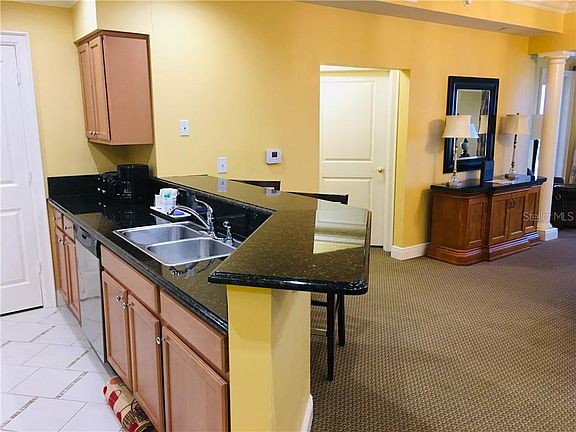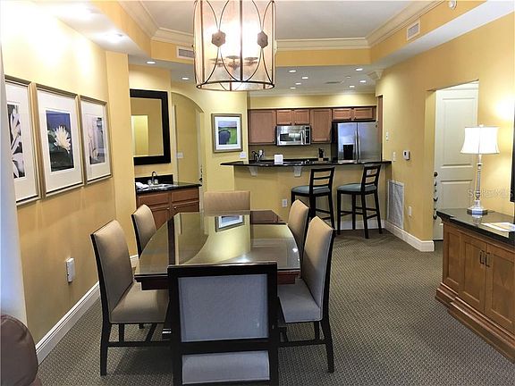 Beautiful Penthouse style unit, fully furnished 2 bedrooms, 2 bathrooms with den. Condo sleeps 8 with 2 sleeper sofas. Covered balcony with golf course views. This unit has an open floor plan, split design, laundry closet, large kitchen with stainless steel GE appliances and wet bar in dining area. Other design features are granite counters through, crown moldings, custom draperies, all kitchen supplies, linens, etc. Unit was never in the rental program and is in mint condition. However, you may rent the unit short term through the Omni Rental program. Amenities include pool and spa, fitness center. Surrounded by 2 championship gold courses, easy access to the shopping, restaurants and minutes to entertainment and theme parks.
