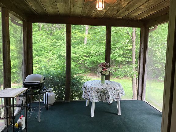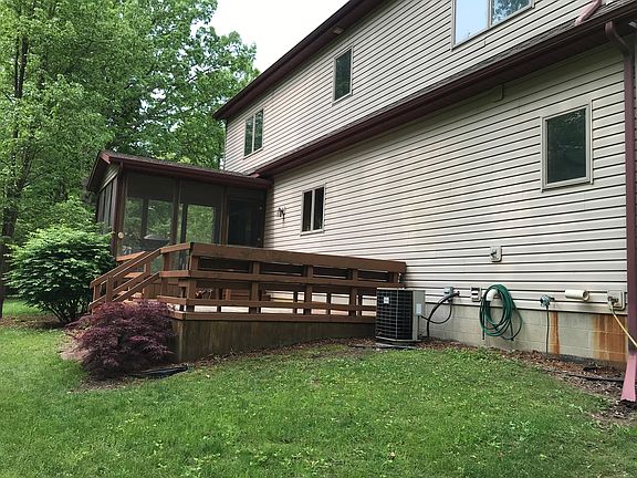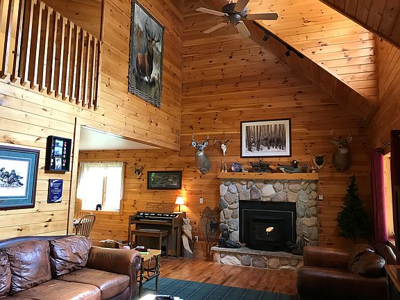 This beautiful 4-bedroom, 2-bath home is nestled into a heavily wooded 10 acre parcel that is loaded with wildlife. The home is back off the road and offers a very private setting. The interior features gorgeous hickory cabinets, hardwood floors throughout and custom interior walls. The first level includes the master bedroom, laundry, mud room and an open living area with a cathedral ceiling that opens up to a balcony on the second floor. The full basement is extra high and ready to be finished. The front porch is covered and stretches the full length of the home. There is a screened-in porch in the back that leads to a large deck. The detached 2 1/2 car garage is heated and has great storage. Personal property included: stove/range, refrigerator, dishwasher, washer and dryer.