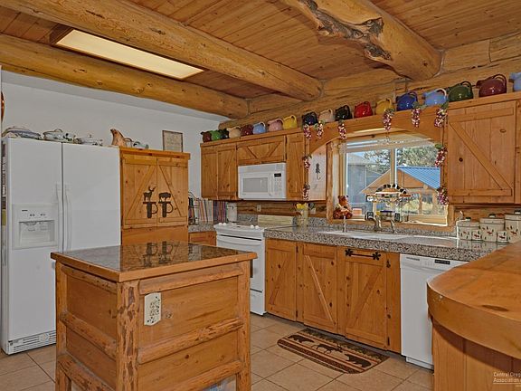 Enjoy stunning cascade views from this charming log home, situated on .98 acres. Home boasts vaulted ceilings with an open and cozy floor plan, centered around carefully selected wood beams. Spacious ADA accessible master and bath on main level with separation from guest room. 2nd master bedroom and bonus area in loft. Manicured front yard, 28x30 1008 sf double-bay shop, small insulated workshop/garden shed, and room for all your toys in backyard. Crooked River Ranch has so much to offer for anyone looking for the quintessential Central Oregon lifestyle: Hiking, Fishing, Equestrian Trails, Golf, Tennis/Pickleball, and a Community Pool.