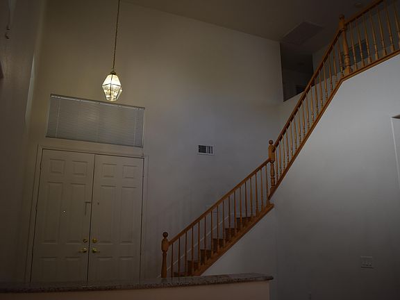 enter into a high ceiling living room, NO CARPET only laminate wood or tile floors, formal dining, separate family room, granite kitchen counters with island, all 4 bedrooms upstairs, master bedroom is huge, covered backyard cemented patio. 3 car garage, home in a cul de sac. long drive way NO PETS From Desert Inn and Cimarron, head N on Cimarron, L on Cervetti, R on Lapis Beach, L on Golden Cypress, L on Harbor Heights, R on Barossa