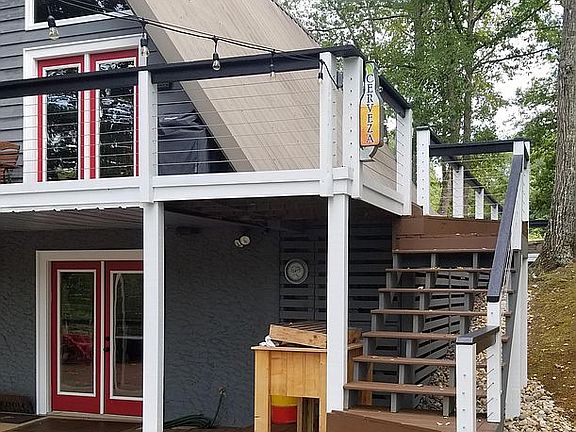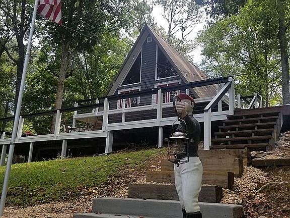 A frame home on gentle slope to, easy walk to 100 foot of year round water front with covered aluminum floating dock with boat lift.