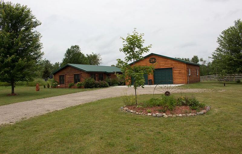 Designer touches inside & out of this incredible home or getaway. 1 bedroom 1 bath house sits on 1 acre near Clare. Large 32X32 detached garage for storage built 2014. Email corrosiontech@mail.com for more information. Thanks for looking.