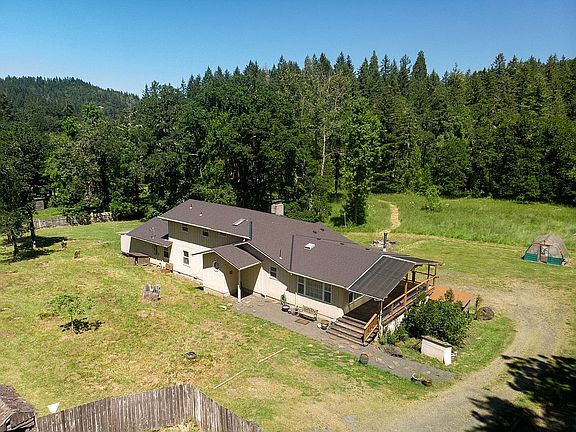 Amazing value! Beautiful country home on a gorgeous 5 acres just outside of W. Eugene! This 5 bedroom, 3 bathroom house offers an inviting space with a wonderfully set up Kitchen, featuring granite countertops and a Wolff propane range! Beautiful country side views, 3 wood burning stoves and AC keep you comfortable year round. The split level offers an office space, laundry room, and a master suite with a slider leading to the deck with a sauna! Decks and roof newly redone.