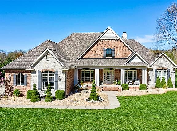 You need to see it to believe it! This impeccable home is on 3.18 perfectly landscaped acres. You'll love the large covered front porch, engineered hardwood floors, crown molding, special mill-work & Eagle aluminum clad windows! Entering, to the right is Your den, to the left is the formal dining room. The open concept living room has a floor to ceiling stone fireplace encased by built-in bookcases & a wall of windows. Flowing into the breakfast nook w/built-in buffet, breakfast bar & into Your spacious kitchen w/additional built-in buffet/china cabinet & beautiful cabinetry throughout. Butlers pantry, mud room & powder room. Family room w/entrance to Your covered deck. 2 Bedrooms w/on-suite on the main level including Master. Downstairs is your laundry room, 2 spacious bedrooms w/Jack and Jill bath, great-room w/access to the covered patio & office. The unfinished area in the basement holds all of your storage and utilities w/large workbench & French doors to the backyard.