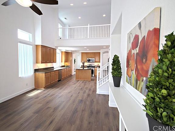 Beautiful turnkey home in a wonderful area of Orangecrest! New wide plank LVP flooring runs through the main living areas downstairs as well as the master bedroom and bath. New lush nylon carpeting finishes the other bedrooms and upstairs loft area. The kitchen is open concept and features a newer dishwasher, stove and microwave that have been used maybe a handful of times. The HVAC system was replaced 12 to 18 months ago it is also only lightly used and is controlled by a Nest. Keep your A/C bills low with a Quiet Cool fan that was installed at the same time. Water heater is also newer. The master suite and two bedrooms are downstairs. Upstairs is a loft area that would make the perfect teen hang out or office space. There is also a large bedroom adjacent to the loft. The enormous pool-size backyard also features an alumawood style patio cover and Tuff Shed. Pear, apricot, pomegranate, almond and a variety citrus trees surround the property. In the garage is a finished attic with a pull down ladder which creates a wonderful storage space. This is a must see home -- so many things new, so much potential with this large spacious lot, so little for you to do but move in!