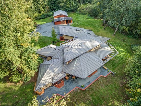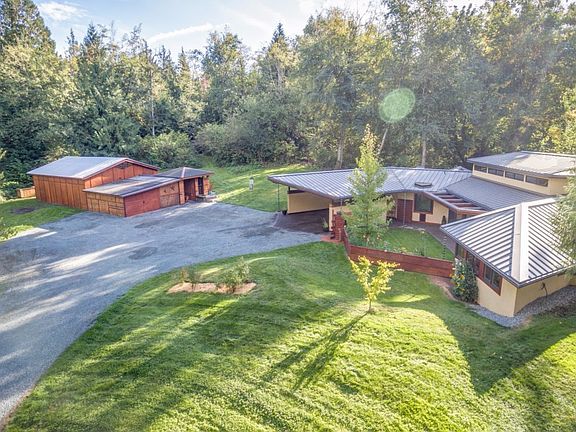 ICF Master piece craftsman built, single level home on gently sloped hill w/beautiful sunset views. Open floor plan, vaulted ceilings, polished-stained concrete floors w/radiant heat throughout. Kitchen features subzero fridge, warming oven, stove top on ctr island, 3 sinks & a pass-thru to covered porch. Built in vac, 2 car carport, 2 shops & chicken coop. Secluded on 18 + acres. Home was on Sustainable home tours.