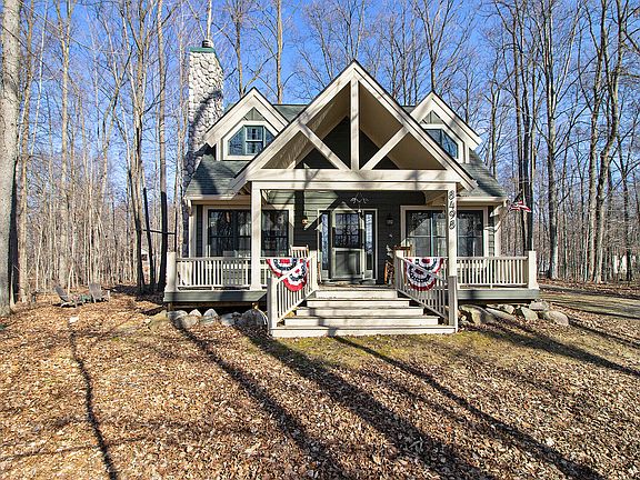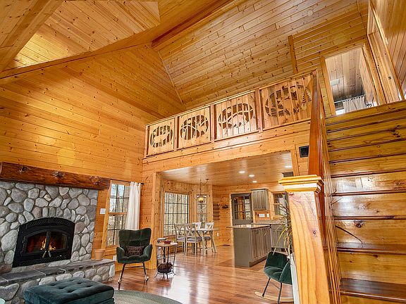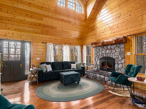 Welcome to your charming log cabin retreat! This amazing home is nestled on a double lot and offers a perfect blend of rustic charm and modern comfort. As you enter you are greeted by the warm ambiance of the wood interior and the open floor plan. Cozy up by the fireplace, perfect for those chilly evenings. The main floor includes 2 bedrooms and a full bath, while the upper level offers a spacious loft area, third bedroom and second full bathroom. The lower level is plumbed for another bathroom, 10 foot ceilings and walk-out bilco doors. Access to all-sports lake Loch Erin. Schedule your showing today.