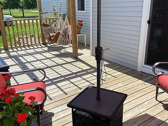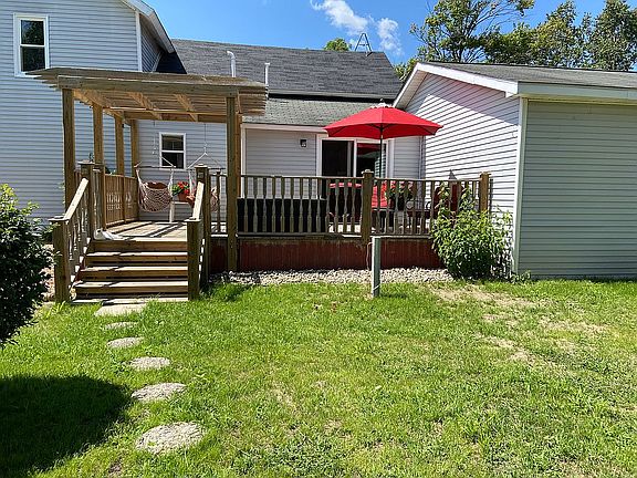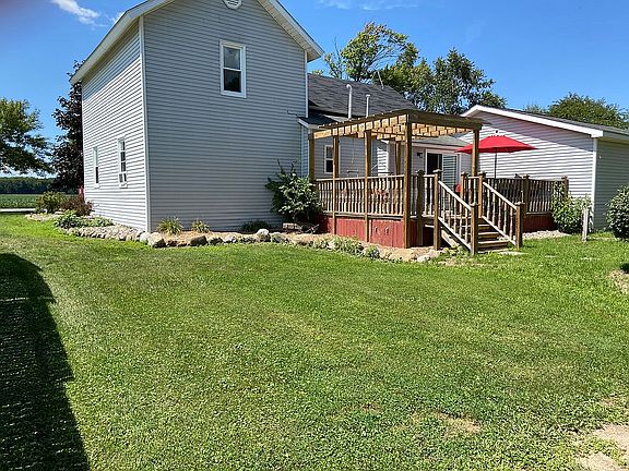 3 bedroom + bonus room, 1 & 3/4 Baths, large open kitchen with laundry/utility/pantry off kitchen which opens onto a large beautiful deck with pergola, overlooking spacious large back yard with small relaxation pond. 1 full acre with Michigan barn and many mature trees that offer ample shade. Rich black soil that has produced a bountiful garden year after year. 5 inch well with 1 inch outdoor spigot new in 2019. All new double pane windows, patio and front entry door new in July 2020. Attached 2 car garage with dividing wall and wood burning stove.