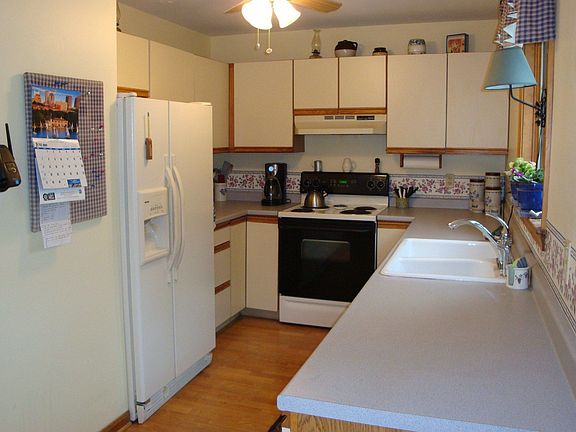 Comfortable 3 bedroom unit w/fireplace, sunken living room, FHW heat, tile & Pergo floors, quiet back deck, 2 car garage, pool, tennis court, 14 acres of common area, privacy & a walking path to the Lake. $20,000 PRICE REDUCTION!
