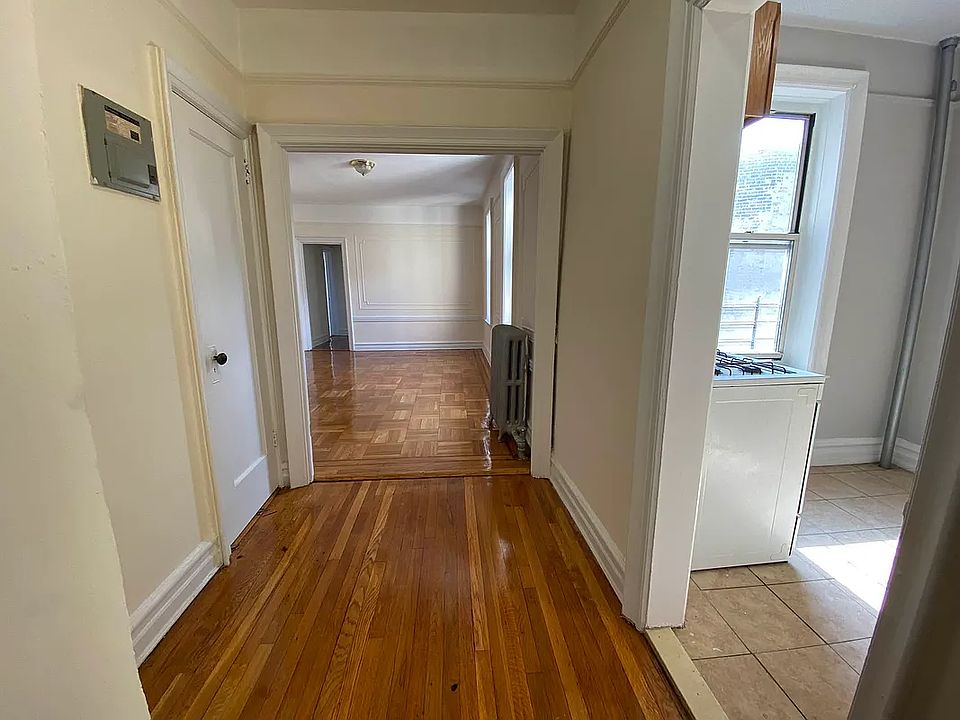 Large 1 bedroom w separate eat in kitchen , very spacious living room and bedroom! walking distance to the J train station , pet friendly Includes heat and water Laundry in the basement 3 blocks away from the train station Must have good credit !