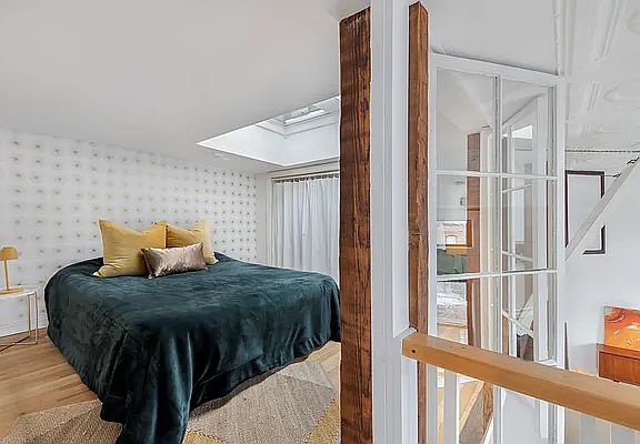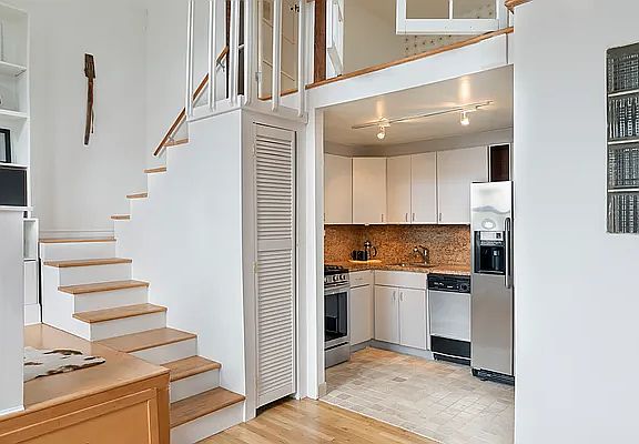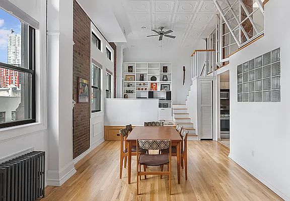A rare pre-war loft in Park Slope with wide open views of Manhattan, Brownstone Brooklyn and sky, located at the corner of 6th Avenue and St. Mark's in the handsome and historic former Carleton Club, a congenial, well-managed 10-unit condominium. Four enormous windows, and two operable skylights fill the space with light. Original loft details include 13' pressed tin ceilings, exposed brick walls, hardwood floors, and a mezzanine sleeping area. In addition to central air conditioning there are two ceiling fans. Abundant storage includes 4 closets, overhead cabinets, a work platform with desk and bookcases with storage beneath. Full size shared washer and dryer on floor below and shared storage space on the same floor. The prime North Slope location provides instant access to shops, cafes, restaurants, gyms, yoga, and more. Prospect Park, the Saturday Greenmarket, BAM and Barclays are all nearby and transportation could not be better with the 2/3 at Bergen St, Q/B at 7th Ave and the main hub at Atlantic Terminal. Low monthlies and NO BOARD APPROVAL REQUIRED.