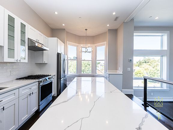 Stunning 2-bedroom, 2-bath residence offering 1,152 square feet of thoughtfully designed living space. The open-concept kitchen features sleek stainless steel appliances, an island bar perfect for casual dining or entertaining, and flows effortlessly into a sunken living room creating a dynamic and inviting layout. Beautiful floors add warmth and elegance throughout, while large windows bring in abundant natural light, both bedrooms are generously sized, and the two full bathrooms offer modern fixtures and ample storage. Step outside to your oversized private deck, ideal for morning coffee, evening gatherings, or quiet relaxation. Central AC, laundry in-unit and 1 off-street parking spot included! Heat and hot water included. Available now- No broker fee! Heat, hot water and 1 parking spot included in rent.